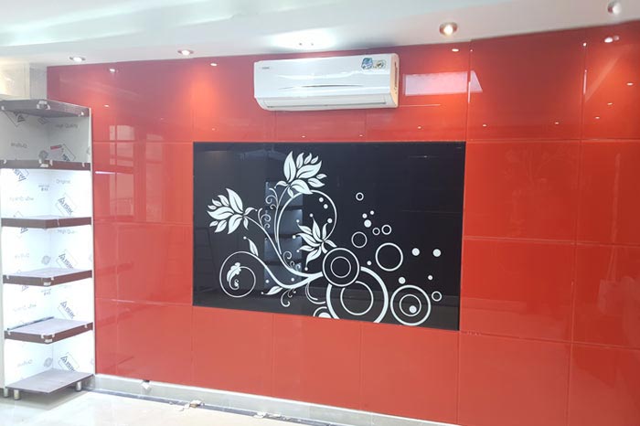 - دیوارهای پذیرایی: می توان از شیشه های لاکوبل برای پوشش دیوارهای پذیرایی و ایجاد نقطه کانونی در دکوراسیون استفاده کرد.